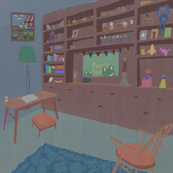 I started with the idea of creating a giant shelf filled with super cool trinkets. I wanted it to reflect both my interests and my wife’s, making it feel personal and full of little details/hidden Easter eggs that the viewer could zoom in and see. One of my favorite ideas was a sock hanging out of a drawer because honestly, that just made me laugh.